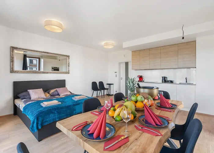 Az apartman olyan önellátási opciókkal rendelkezik, mint a felszerelt konyha, valamint étkezővel és kültéri étkezőhellyel is büszkélkedik, ahol a vendégek pihenhetnek és élvezhetik étkezéseiket. A szálláshelytől szomszédságában van az Autobusove nadrazi na vltavske buszpályaudvar.